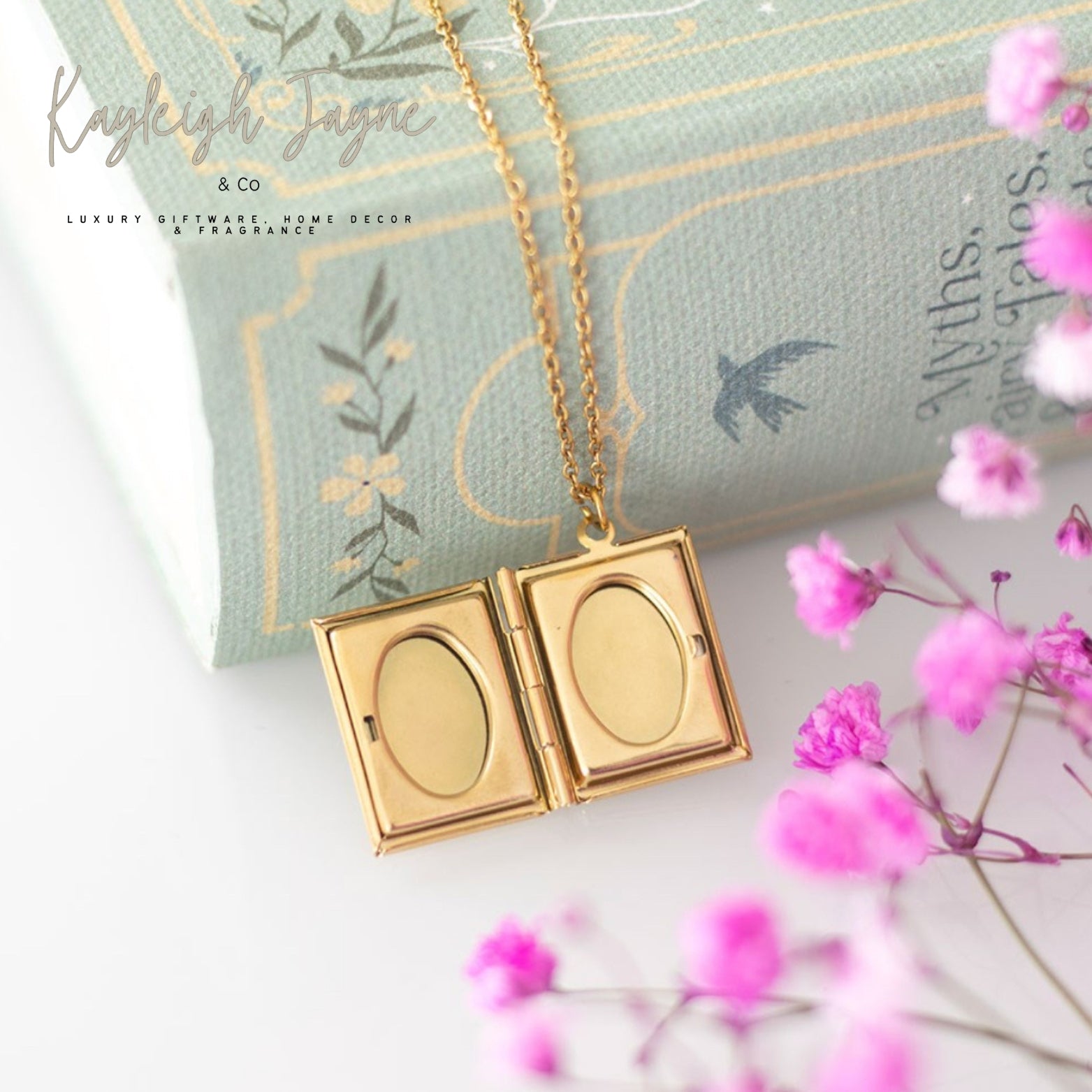 This gold-toned locket necklace opens like a miniature book, making it a treasured keepsake for book lovers who carry stories close to their heart. Presented in a matching gift box, it's a thoughtful and literary-inspired gift. Made from stainless steel. May contain traces of nickel and is made from alloy in accordance with REACH specification.
