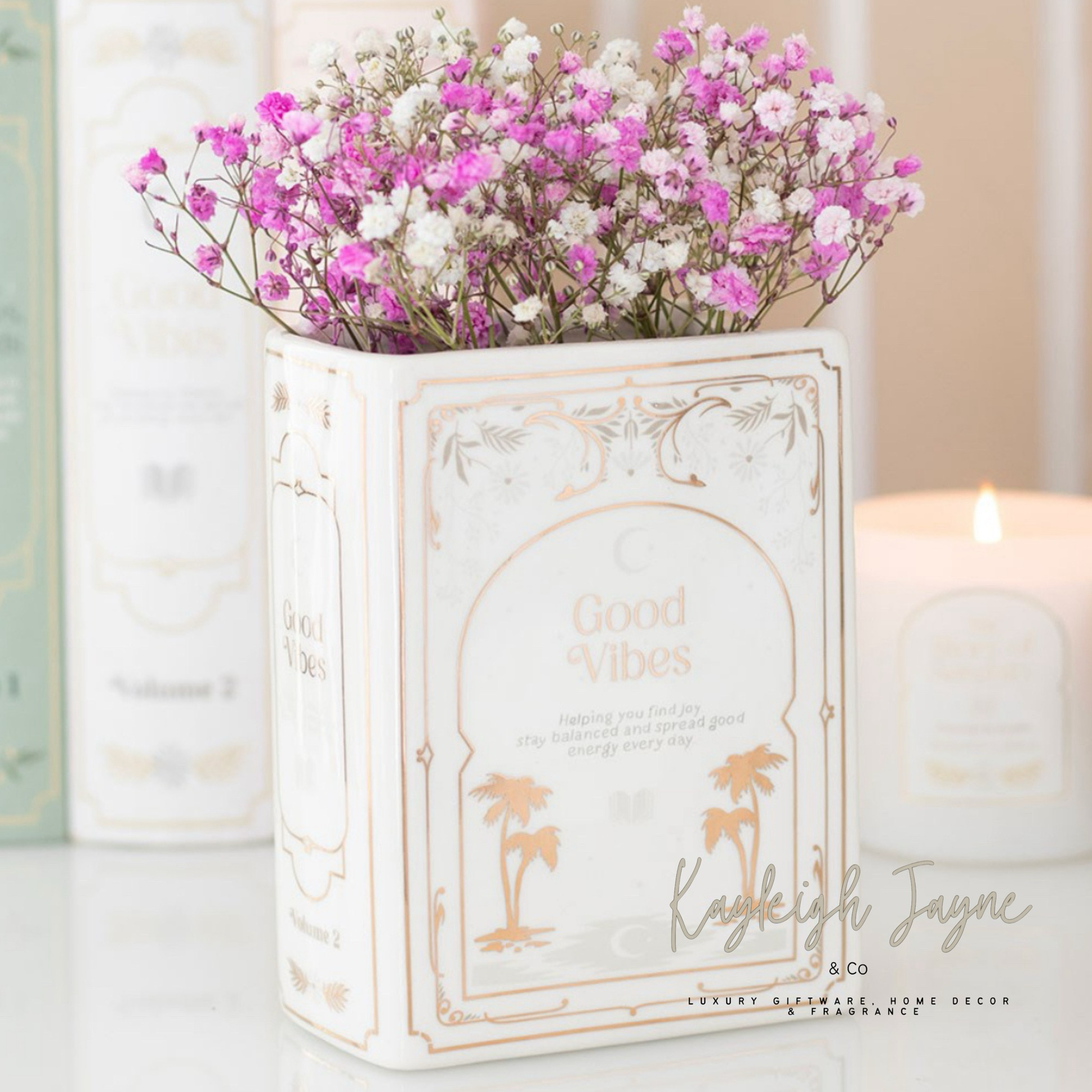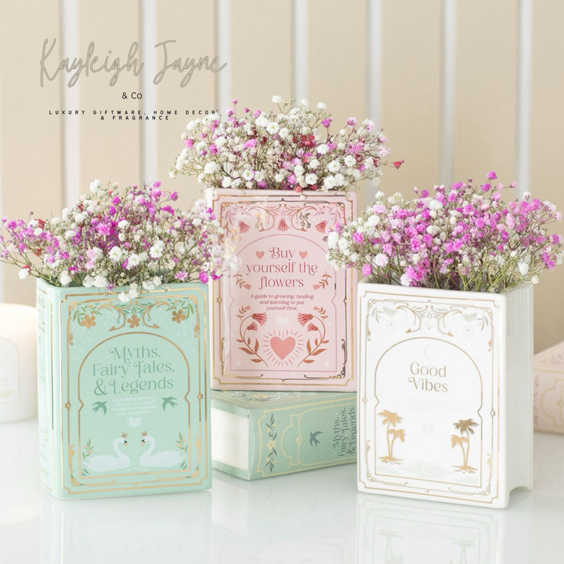 Bring a literary flourish to your space with this green ceramic vase designed in the shape of an upright book. A striking home accessory for book lovers, perfect for displaying fresh blooms or dried flowers on bookshelves, desks, or reading nooks. 600ml.