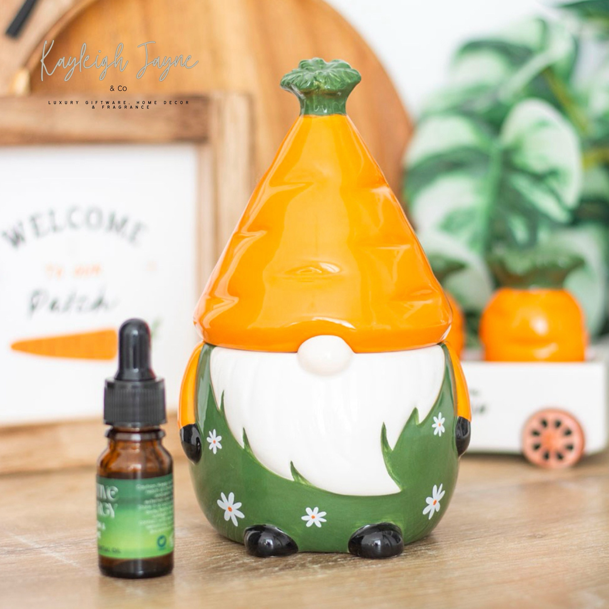 Add some quirky character to your home decor with this gonk shaped oil burner. Remove his carrot-shaped hat top to add fragrance oils and then place a lit telight inside. A delightful Easter or spring decoration and gift idea for any keen vegetable gardener. Always remove the lid whilst in use. Recommended for use with fragrance oil diluted with water.