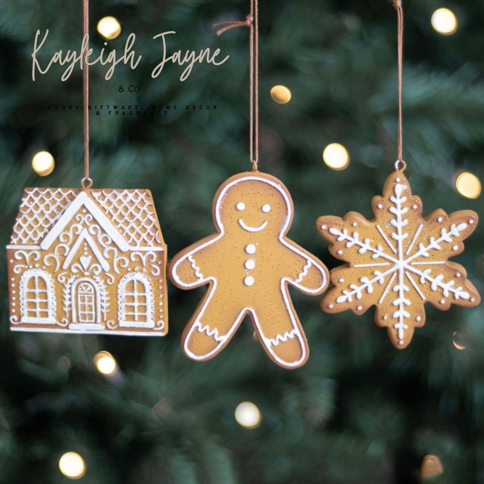 This set of 3 hanging decorations comes in sweet gingerbread cookie designs that look almost good enough to eat! Each ornament is beautifully designed with realistic gingerbread details and a sprinkle of glitter, making them the perfect addition to any Christmas tree