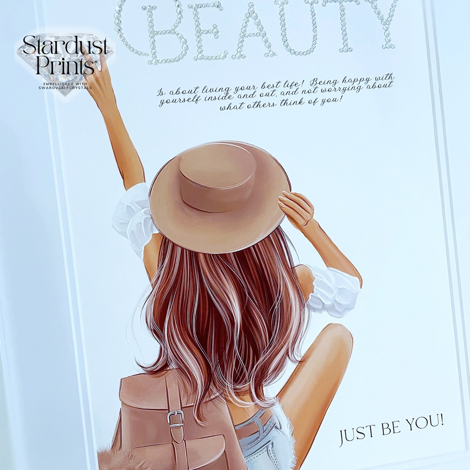 Stardust Crystallised print® Embellished with Swarovski® Crystals- Girl In Hat Design ANY WORDING
