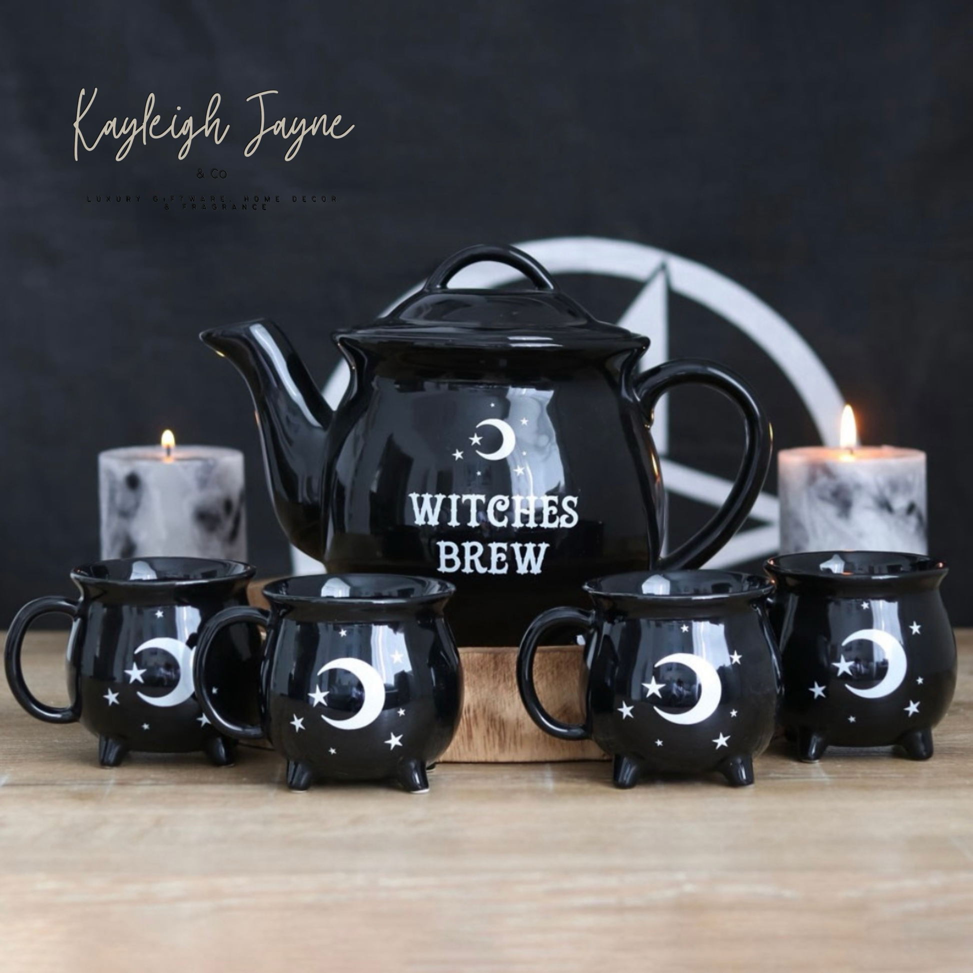 This enlarged version of our popular Witches Brew Teapot hold multiples cups of tea. A matching set of four cauldron tea cups finishes off this mystical tea set that's sure to catch everyone's eye. Each teacup holds approximately 8 oz.